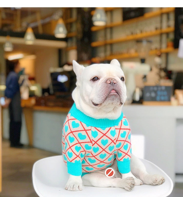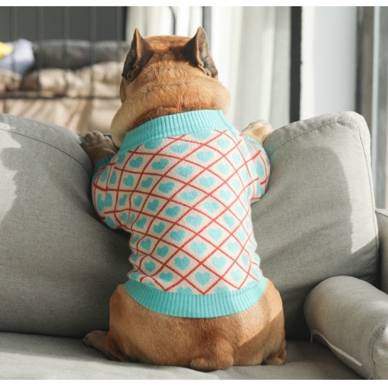 Your furry friend will be the talk of the dog park in this cute Blue Heart sweater! Perfect for a fall stroll or showing off at family gatherings.